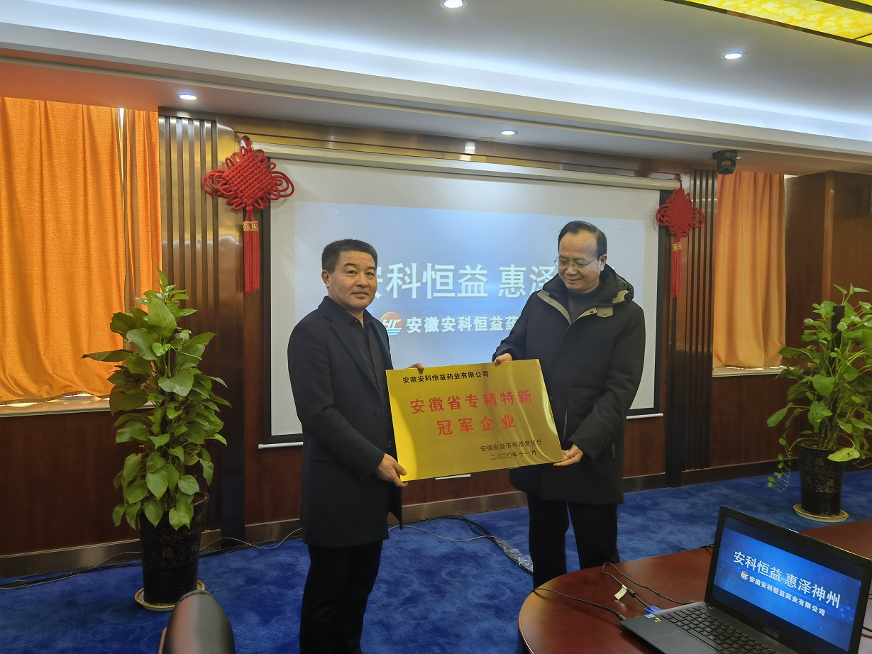 20201221日下午,銅陵市中小企業(yè)局局長朱永平率隊,就公司榮膺“安徽省專精特新冠軍企業(yè)進行授牌。