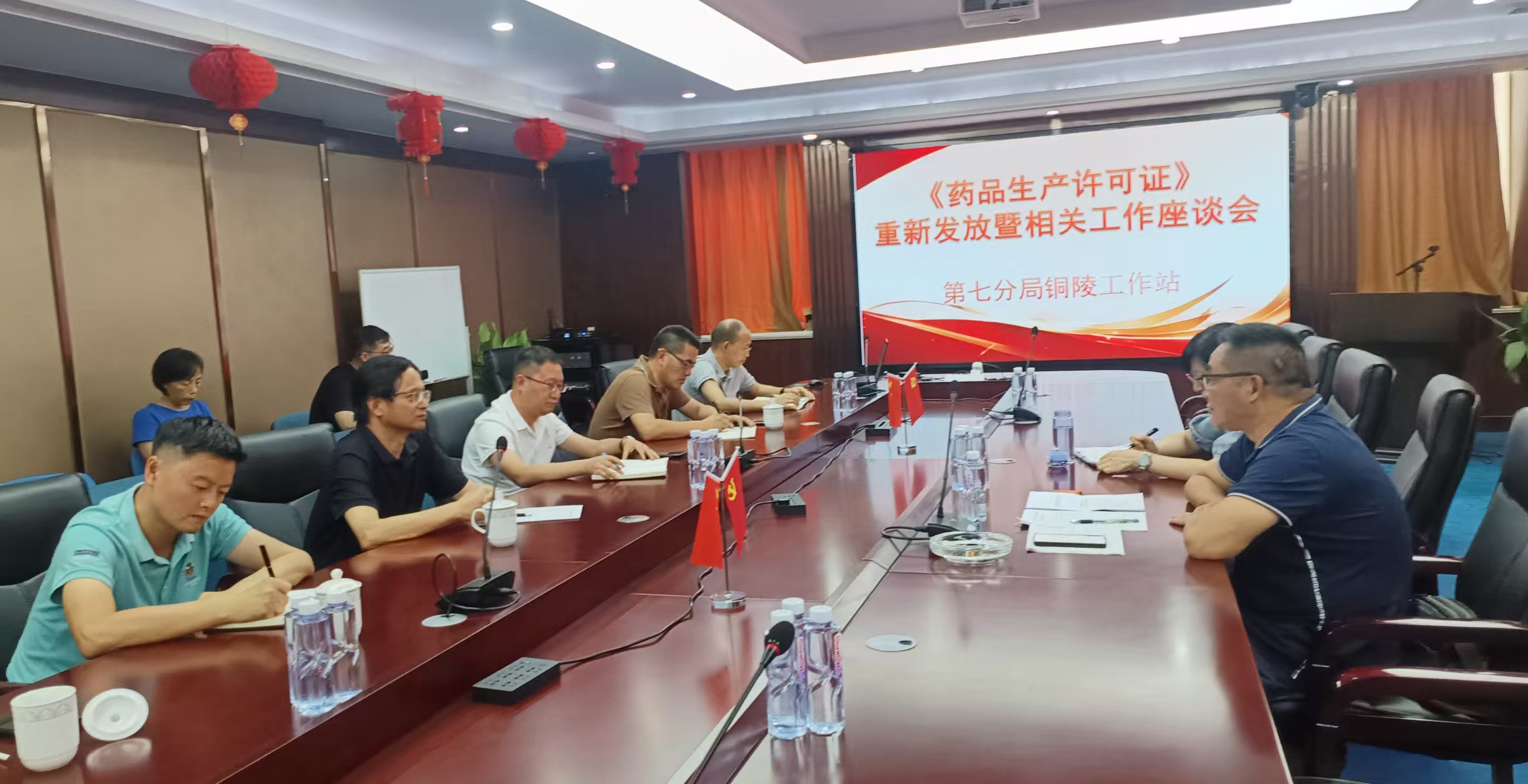 7月21日下午,銅陵市《藥品生產許可證》重新發放及相關工作座談會在公司召開,銅陵市轄區5家藥品生產企業生產負責人、質量負責人參加會議,省藥監局第七分局處長倪敏、科長甘傳會主持了該次座談會。